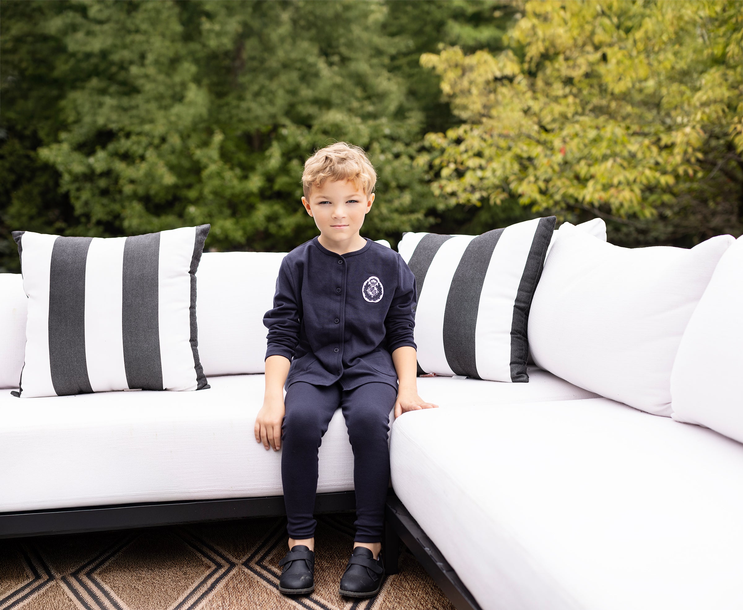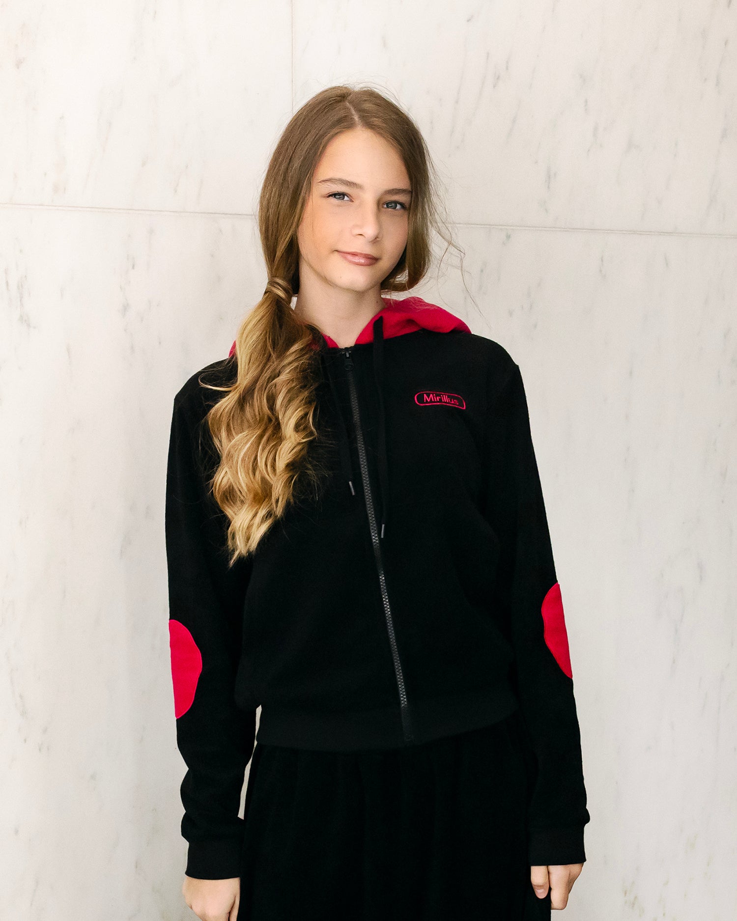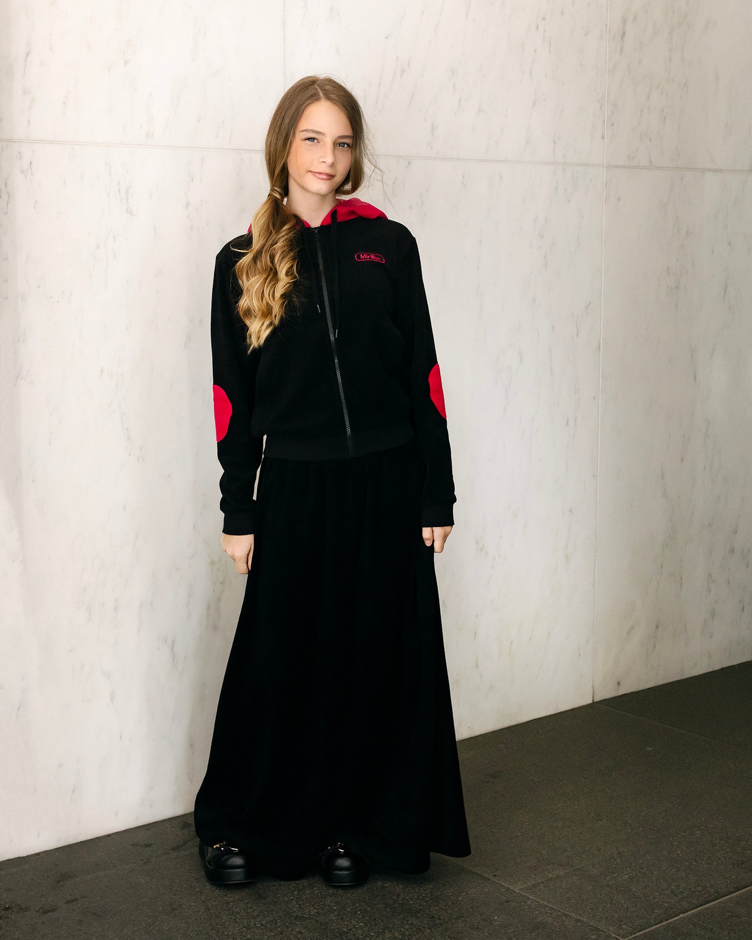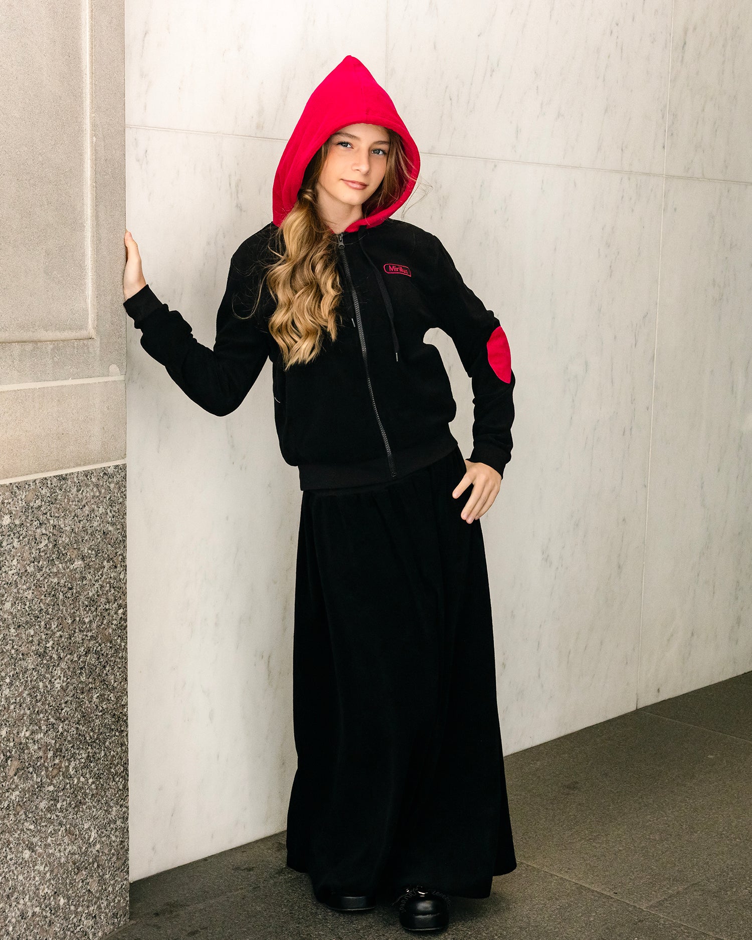 Black Velour Two-Piece Set with Red & Gold Emblem