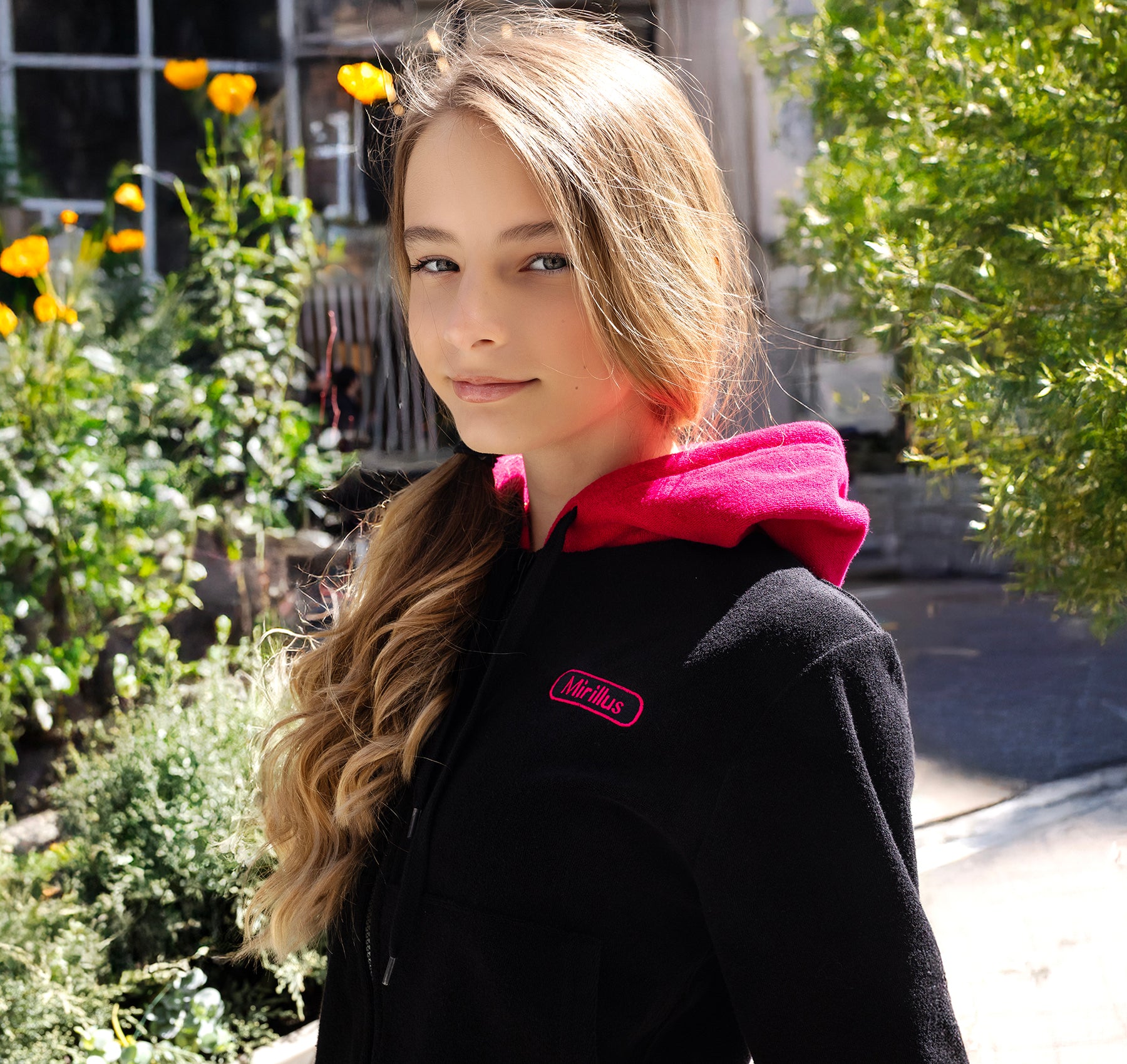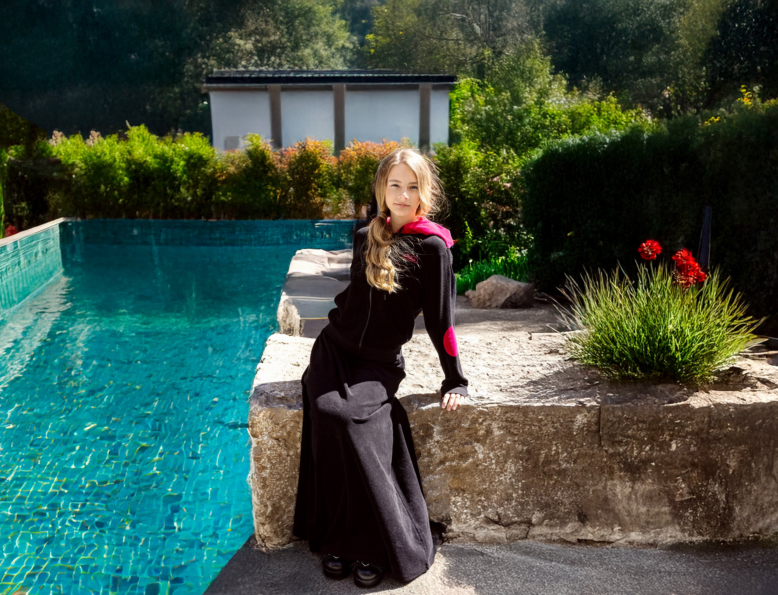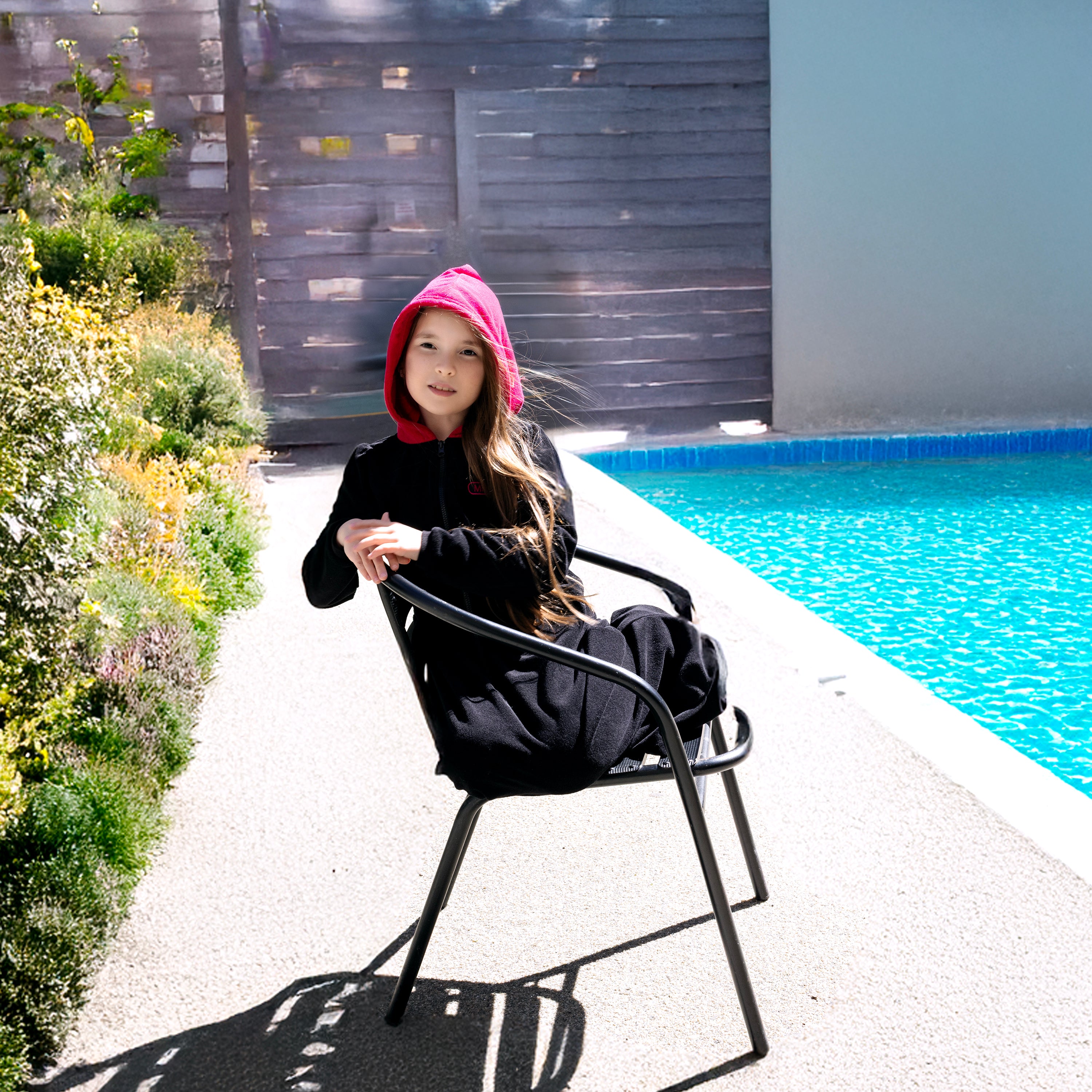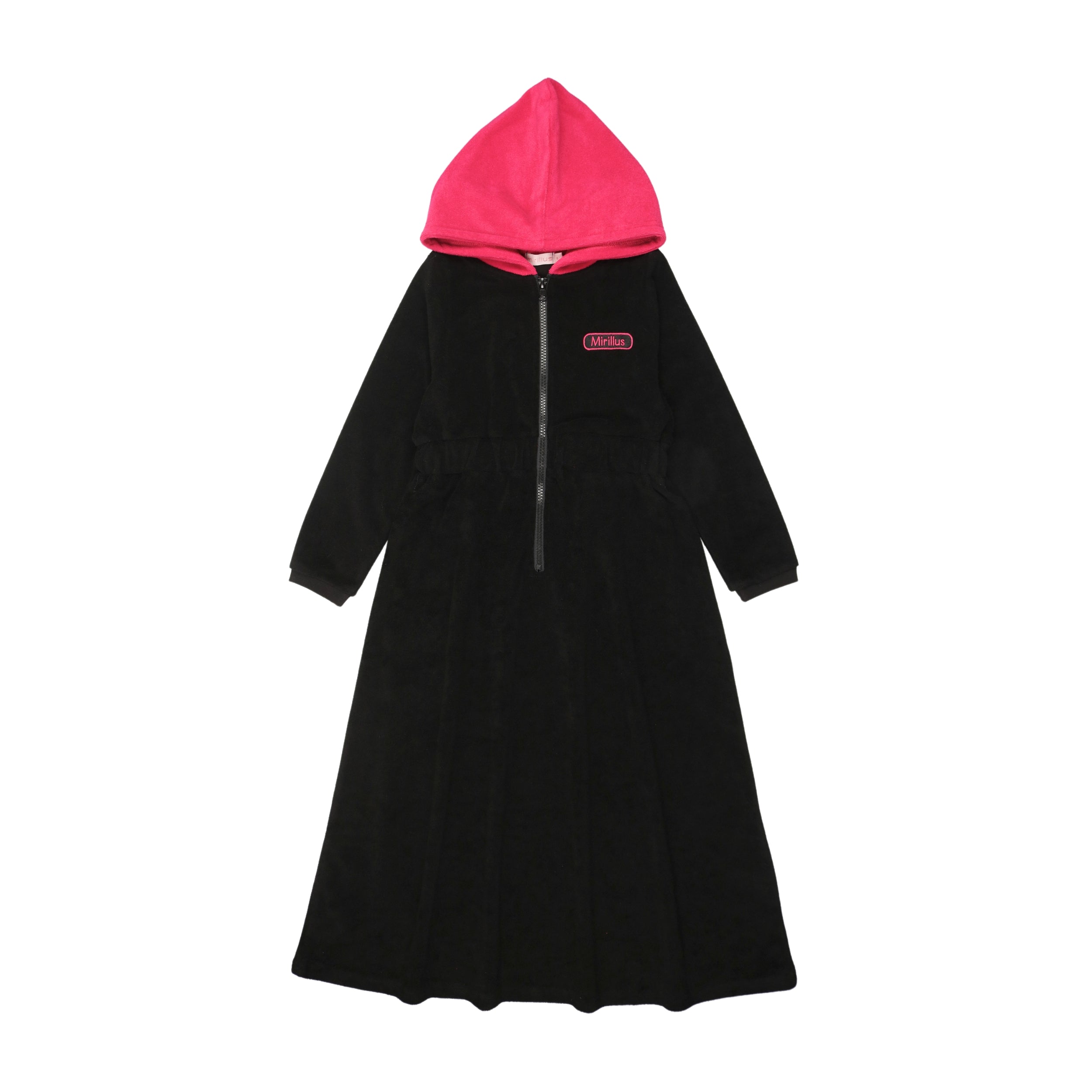 Girls' Black One-Piece Terry Robe with Fuchsia Hood