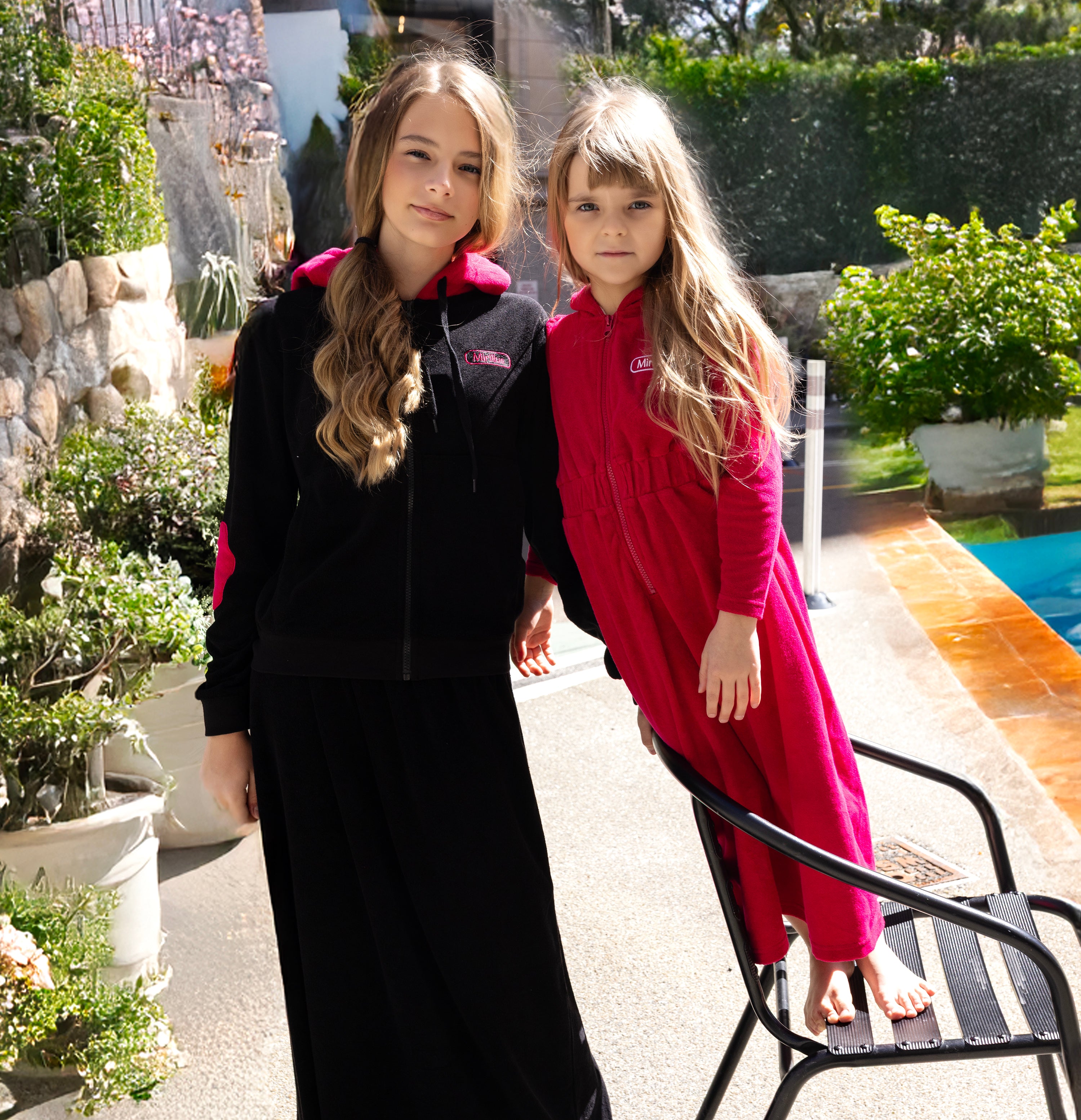 Girls' Black Two-Piece Terry Robe Set with Fuchsia Hood