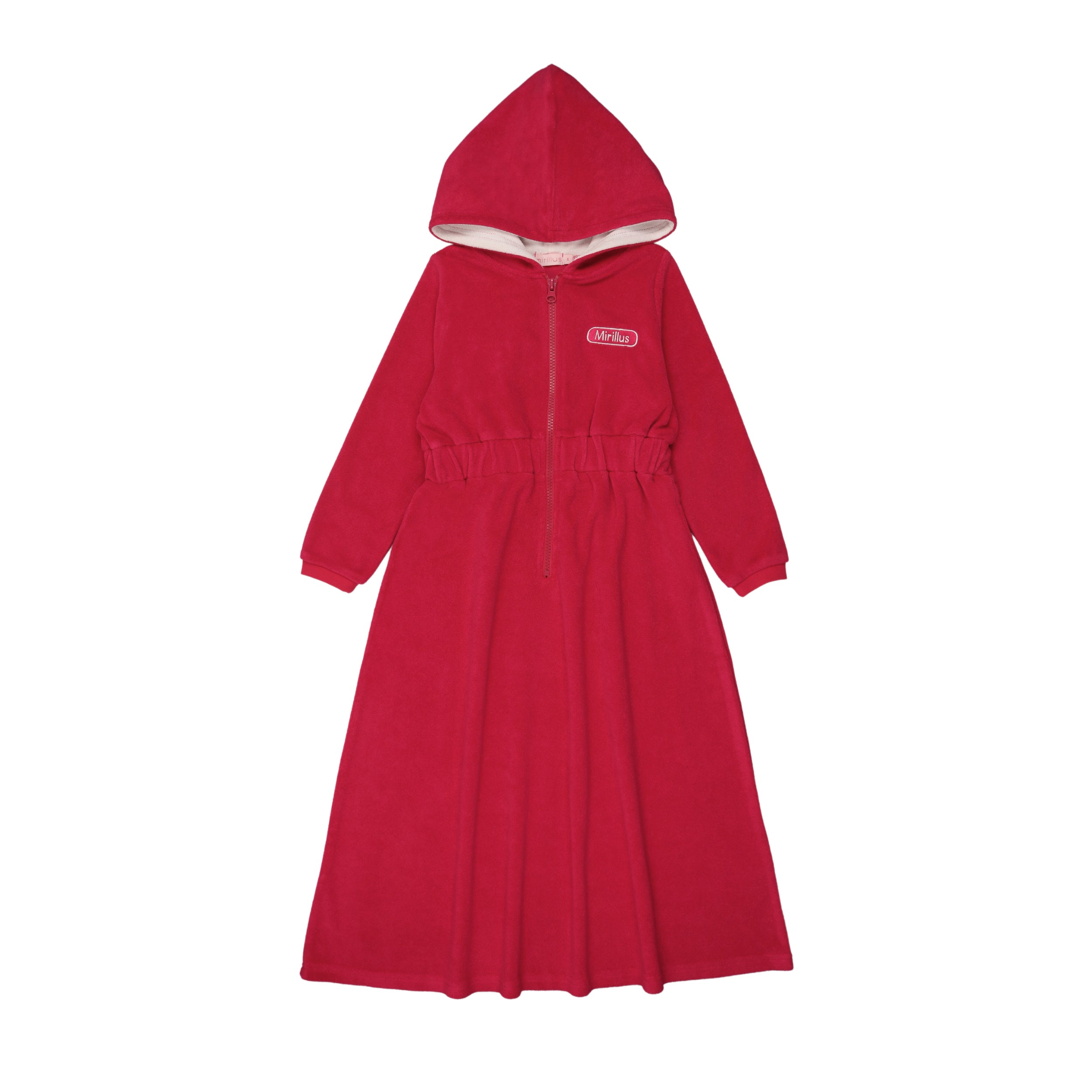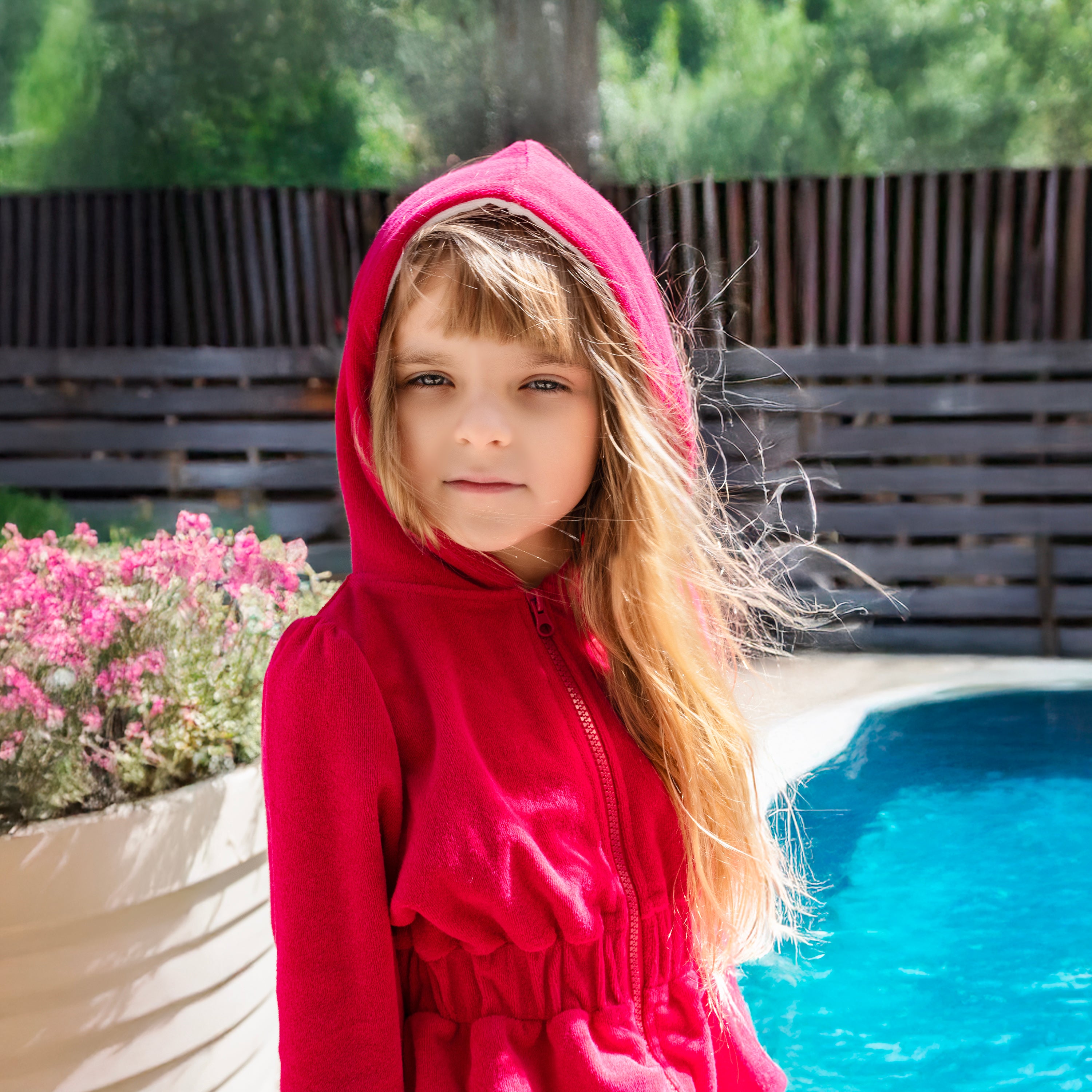Girls' Fuchsia One-Piece Terry Robe with Hood and White Lining