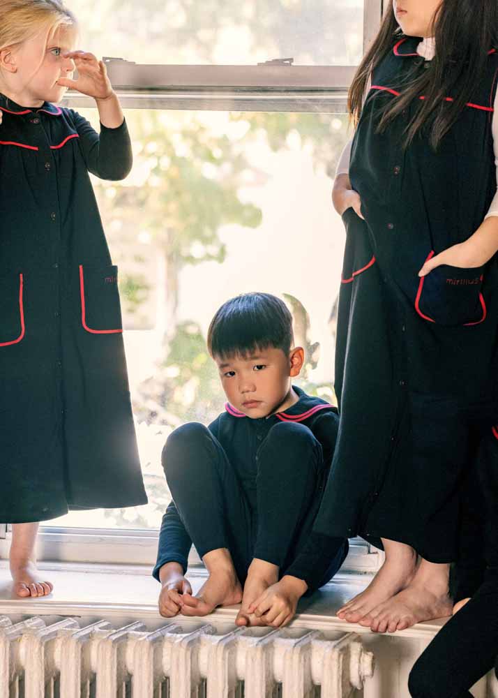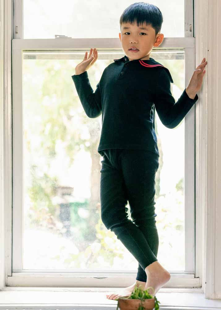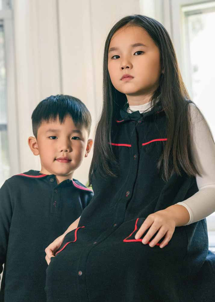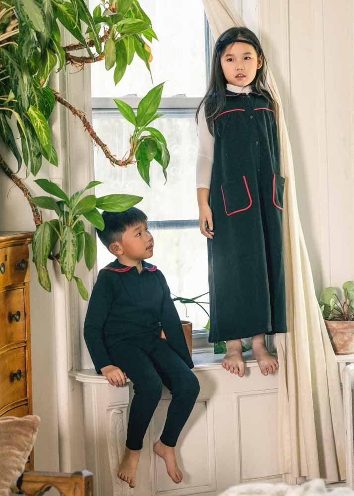 Elegant and distinctive, our Black & Red Two-Piece Set with Sailor Collar is crafted from soft French terry. The set features a charming sailor collar, red accents, and delicate embroidery that add a refined, stylish touch. Designed to combine comfort and timeless style, it’s a standout addition to any wardrobe.