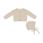 Wrap your little one in timeless charm with our Ivory Knit Cardigan & Bonnet Set. Featuring a classic knit design with delicate detailing, the cardigan offers cozy style, while the matching bonnet completes the look with sweet refinement. Available as a full set up to size 12M; size 18M includes the cardigan only. Pair it with our other matching pieces from this collection, sold separately, for an effortlessly styled ensemble.